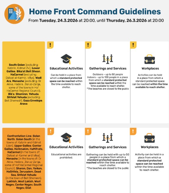 Le linee guida del Comando del Fronte Interno sono state aggiornate [aggiunto domenica 15 marzo 2026; aggiunto martedì 17 marzo 2026]